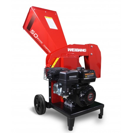 Petrol powered 5.6HP garden shredder for professional use. Equipped with a strong Loncin G200F engine. Maximum shredding material (branches) up to 5 cm. With 2 shredding blades, easy to change if wearied out.